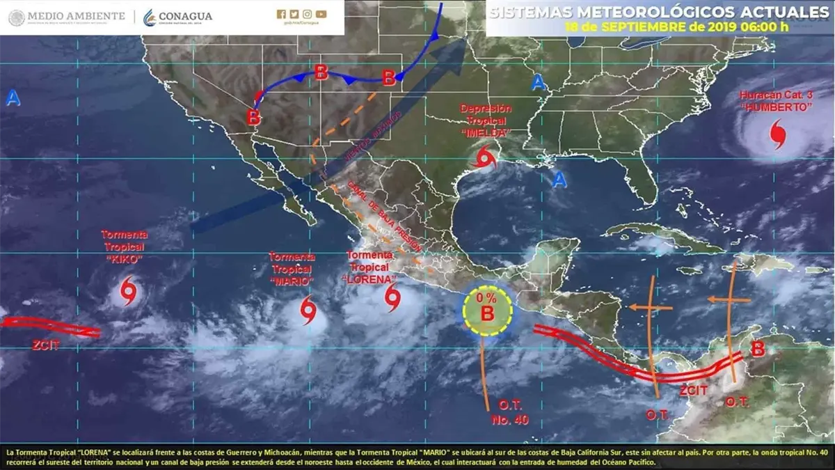Además, Lorena, que se localizará frente a las costas de Guerrero y Michoacán, causará lluvias intensas en áreas de Colima, y muy fuertes en Nayarit y Jalisco.