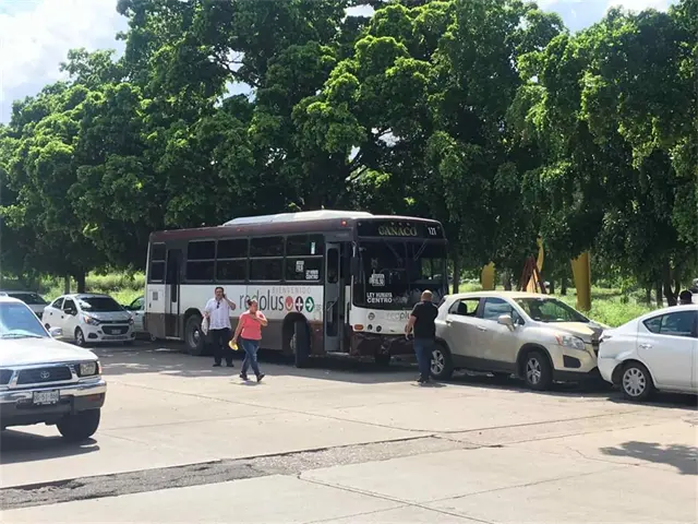 En el incidente participó un camión urbano de la ruta CANACO, el cual golpeó por alcance a una camioneta, provocando que ésta a su vez impactara contra otras dos unidades.