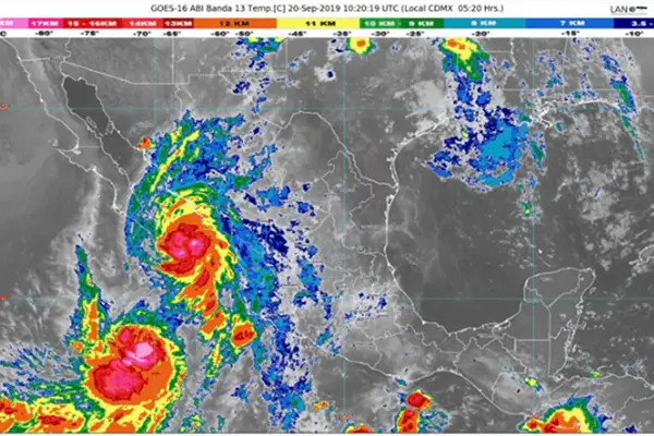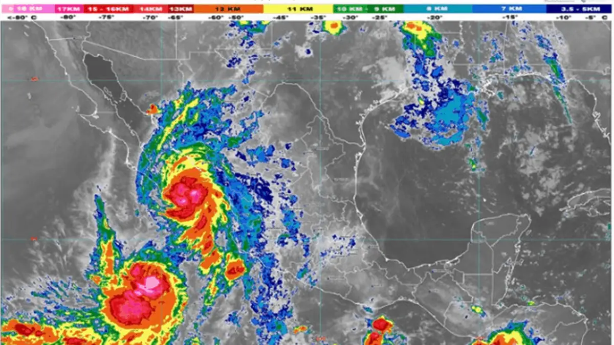 Su nubosidad interacciona con las bandas nubosas de la tormenta tropical Lorena, reforzando el potencial de lluvias en el occidente del país y en Baja California Sur.