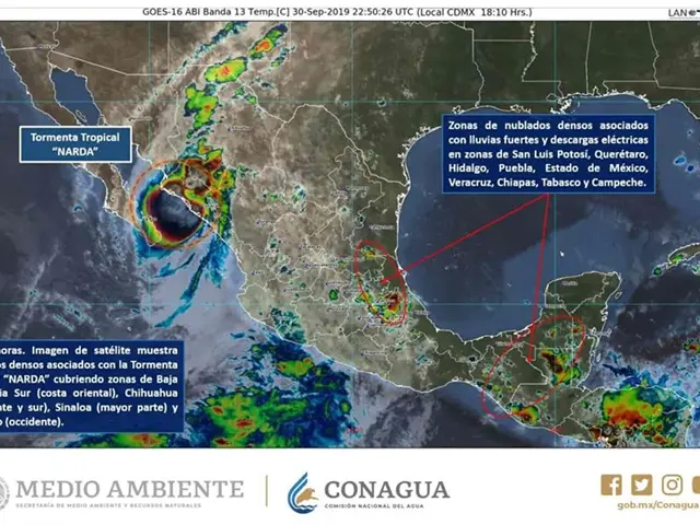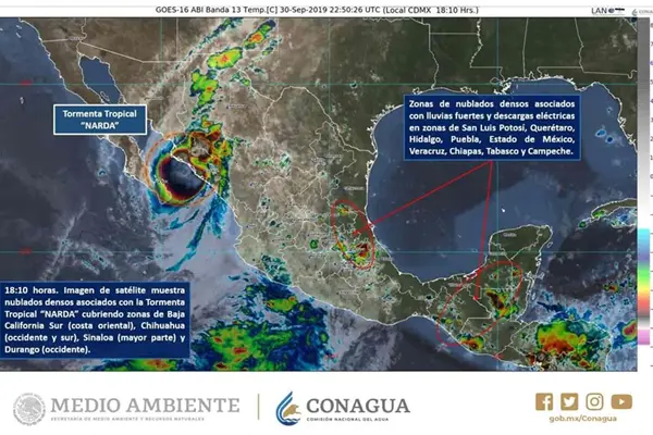 La tormenta "Narda" se desplaza frente a la costa norte de Sinaloa