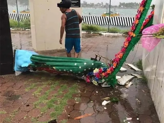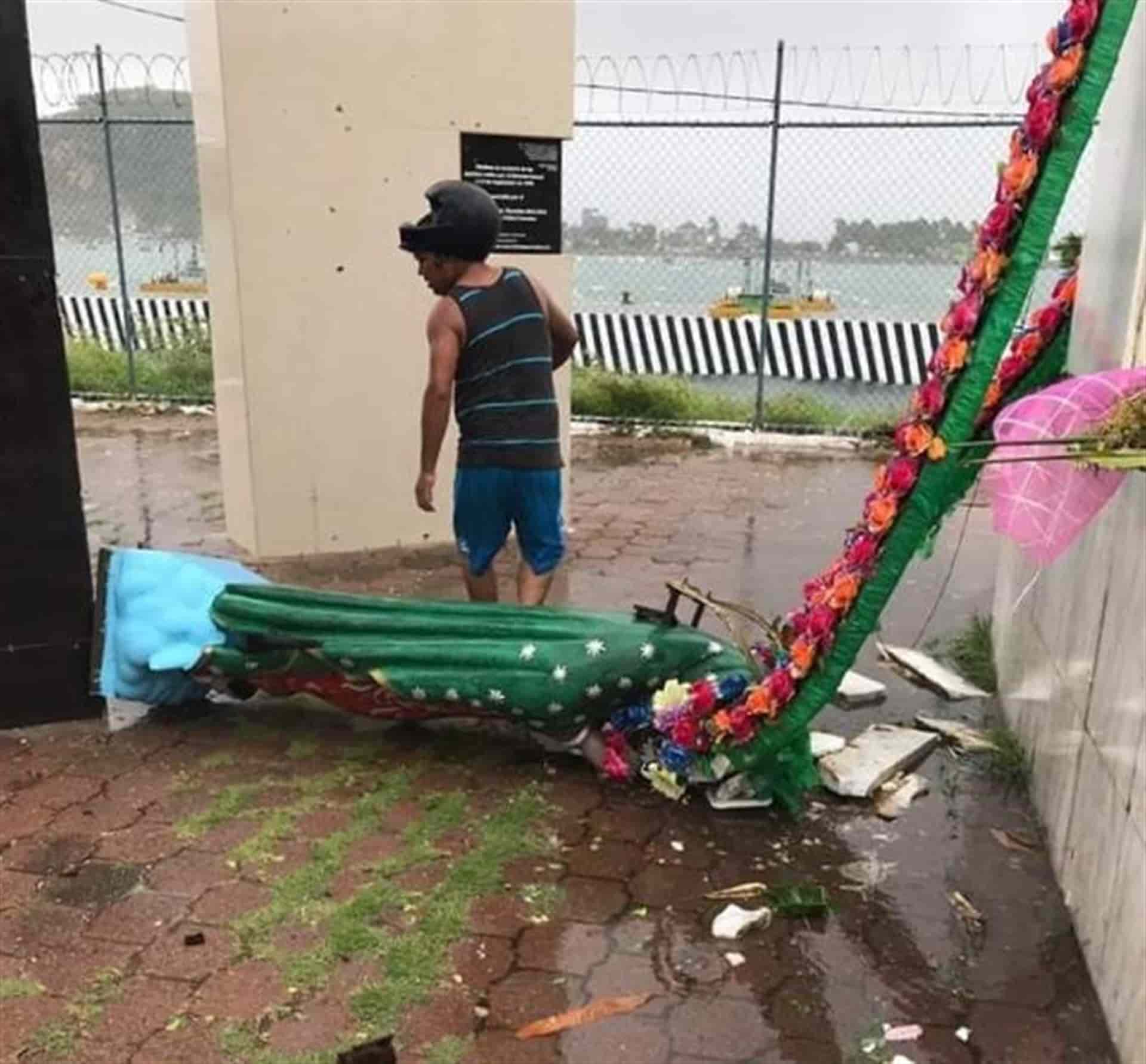 La figura de la Virgen que se erigió y se le da dones de protección contra huracanes, para que ofrezca buenas capturas de pesca y en memoria de los pescadores fallecidos en el mar, cayó boca abajo en la pérgola del lugar.