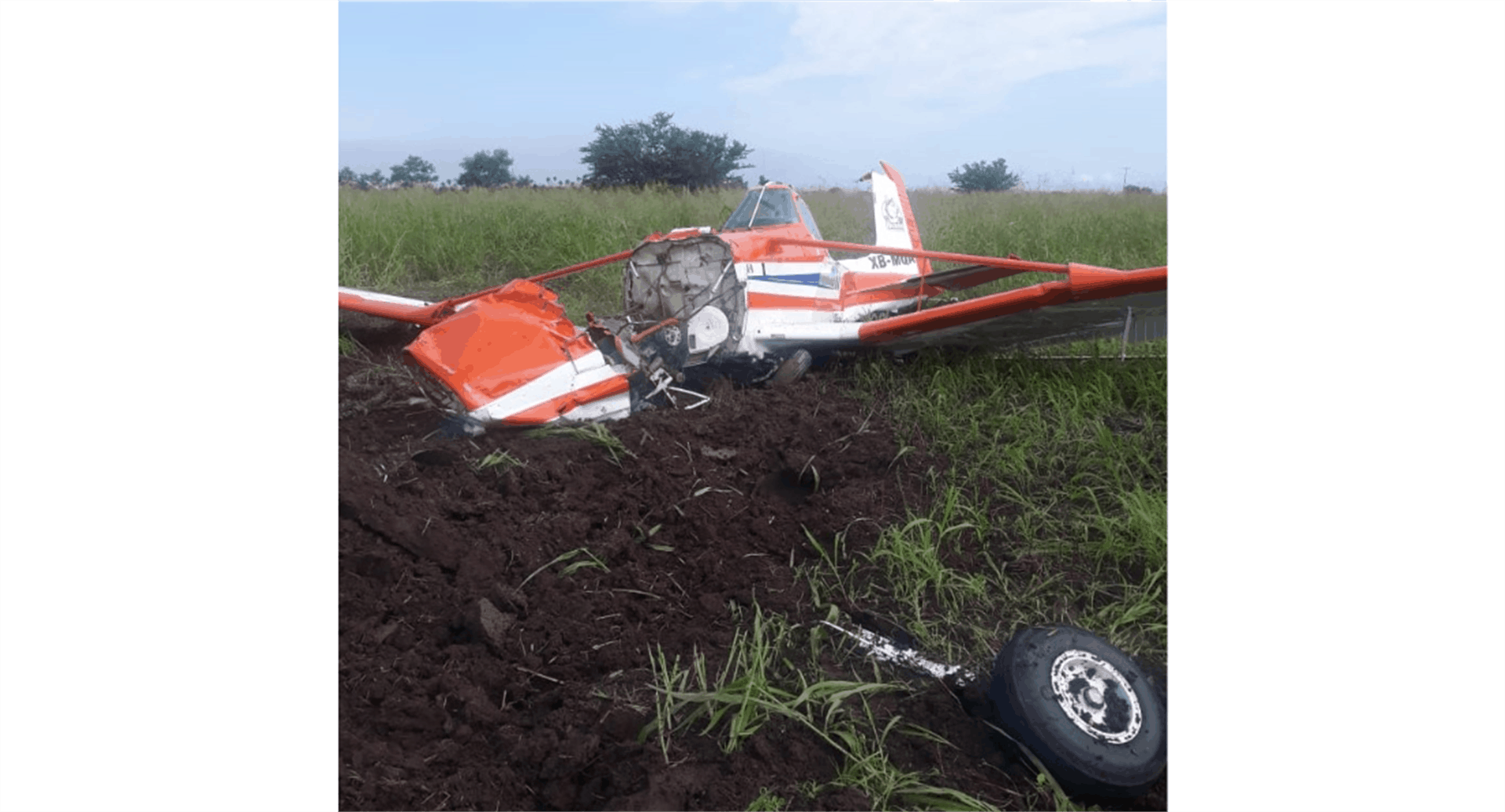 Tras el reporte del accidente, personal de la Secretaría de Seguridad Pública y Transito Municipal acudieron a corroborar el hecho, localizando la aeronave de color naranja con blanco, y numero de matrícula XB-MQR con severos daños en la parte frontal.