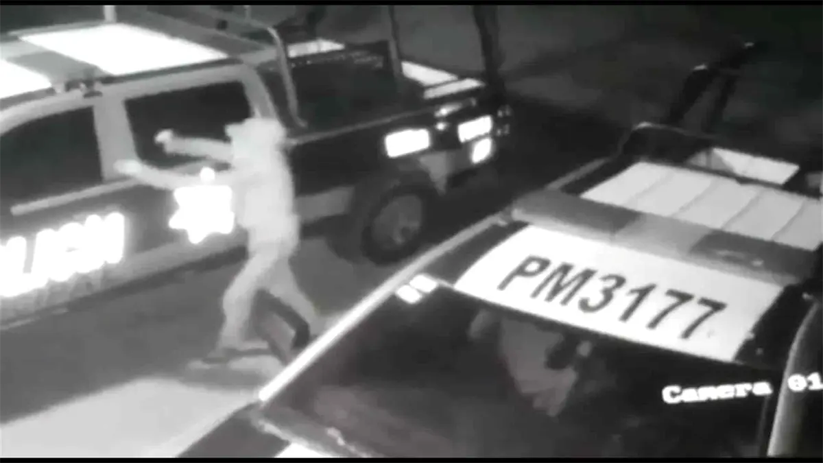 En un video captado desde una cámara de seguridad del mimo taller, se observa cómo un sujeto al parecer joven, con el rostro cubierto, se acerca y daña las unidades, mientras trata de evitar que las cámaras videograben su rostro, mientras miraba las patrullas, hasta que termina dañando y robando.