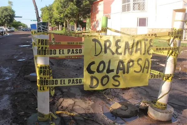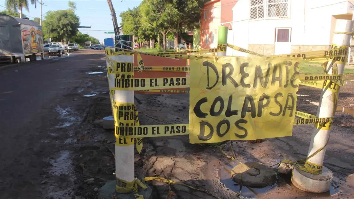Los Mochis, Sin.- Vecinos del Residencial Deportiva de Los Mochis bloquearon la avenida Santos Degollado, en el tramo de Basquetbol y bulevar 10 de Mayo, por las condiciones deplorables en que se encuentra el sector en temas de socavones y drenaje.