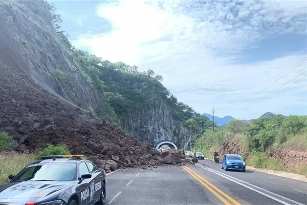 Mazatlán, Sin.- Poco antes de mediodía de este sábado 12 de octubre, el derrumbe en un cerro provocó el cierre parcial de la autopista Mazatlán-Durango. Afortunadamente no se reportan lesionados.