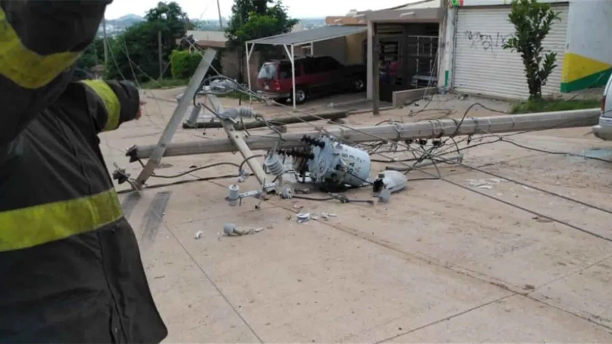 Camión de mudanza arranca poste de CFE; deja 5 colonias sin luz