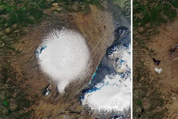 Apenas el verano pasado, en un acto simbólico, un grupo de personas conmemoró la pérdida del glaciar Okjokull, declarado oficialmente muerto en 2014 cuando perdió el suficiente volumen para moverse. Fue un glaciar de aproximadamente 700 años y terminó reducido a un pequeño pedazo de hielo en la cima de un volcán.