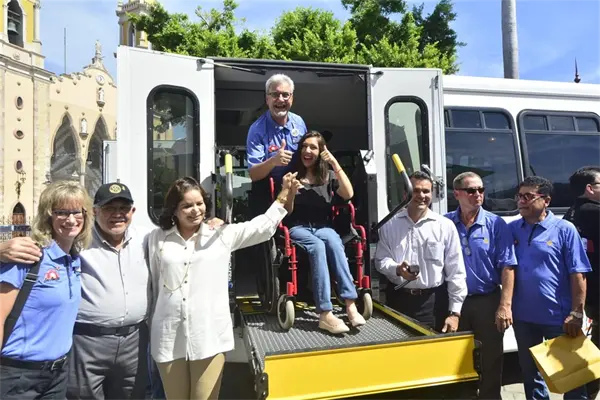 Este martes, en la explanada de la Plazuela República, presidentes de clubes rotarios de Mazatlán y Alberta, Canadá, se reunieron para ser testigos y entregar a las autoridades del Municipio la unidad, que cuenta con elevador.