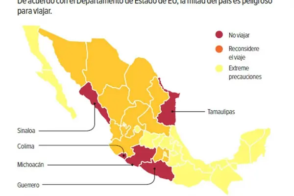 travel.state.gov, ha catalogado a casi la mitad del territorio con el nivel 3, un área de alto riesgo de violencia para la que pide se reconsidere el viaje.
