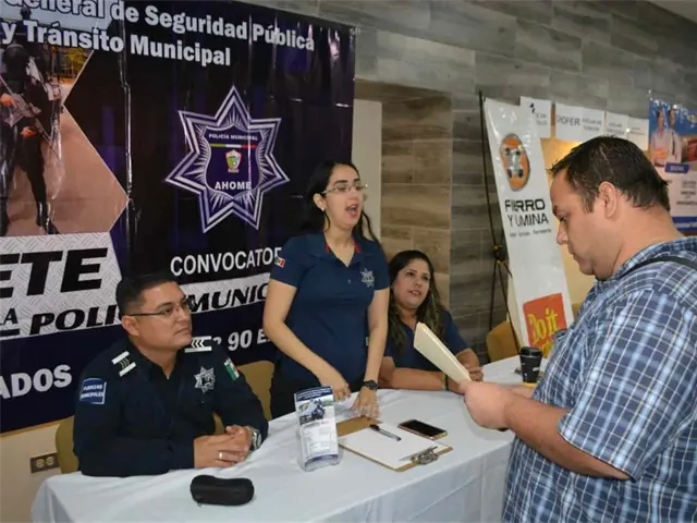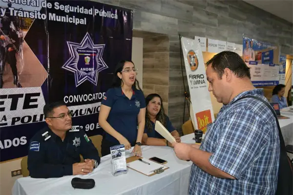 Los Mochis, Sin.- La convocatoria que marca los requisitos para las personas interesadas en ingresar a las filas de Seguridad Pública municipal de Ahome está abierta, y este día personal de Programas Preventivos de la dirección de Seguridad Pública, instaló un stand en la Segunda Feria del Empleo Los Mochis 2019, para ofrecer información a los interesados en pertenecer a la corporación.