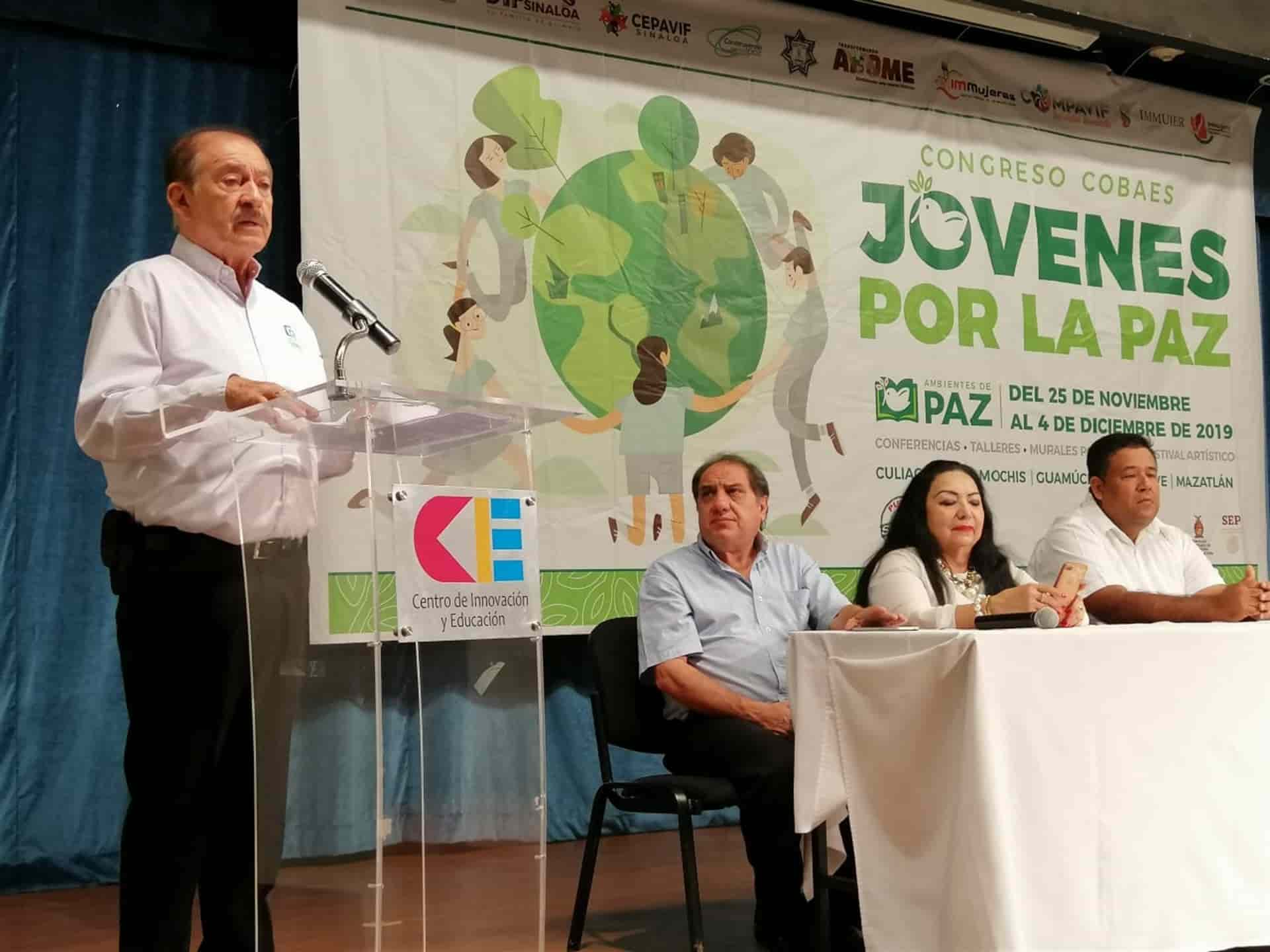 Los Mochis, Sin.- Autoridades del Colegio de Bachilleres del Estado de Sinaloa (Cobaes) inauguraron el Congreso Jóvenes por la Paz 2019, en los planteles de la zona norte, el cual tiene la finalidad de fortalecer la conciencia ciudadana de los estudiantes y generar la reflexión y análisis de la responsabilidad en la cultura de la prevención.