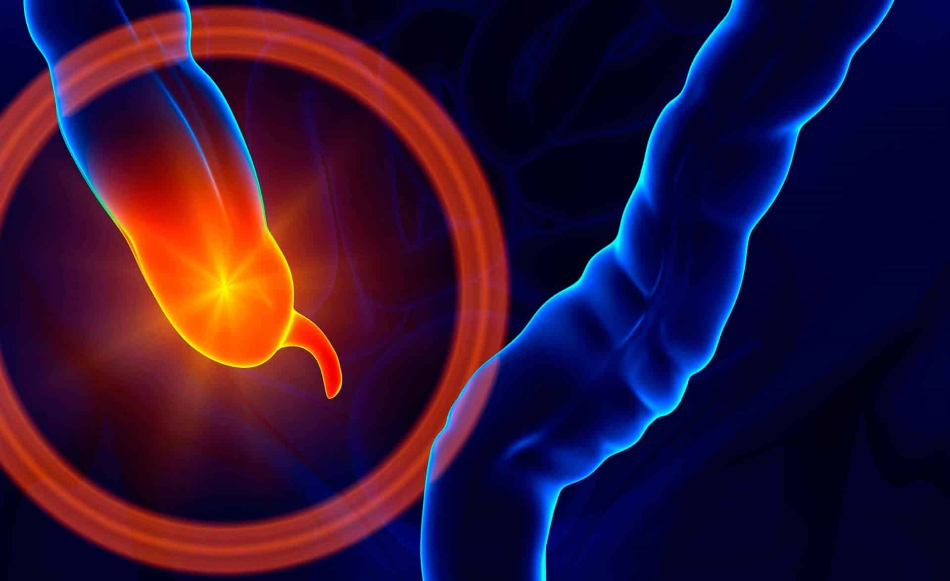 La apéndice es una porción del intestino grueso que mide de ocho a 12 centímetros. En ella se acumulan partículas de alimentos que pueden derivar en una inflamación, un padecimiento conocido como apendicitis.