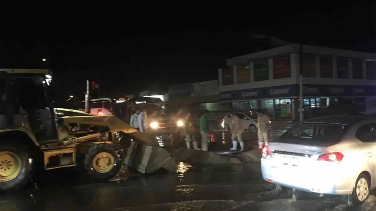 Para controlar la fuga, el personal de la Gerencia Técnica y de Operación de la Junta de Agua Potable cerró tres válvulas de control por lo que la parte nororiente del sector centro permanece con baja presión en el servicio, en lo que se repara la fuga; sin embargo, se estima que en transcurso de la noche se repara la fuga.