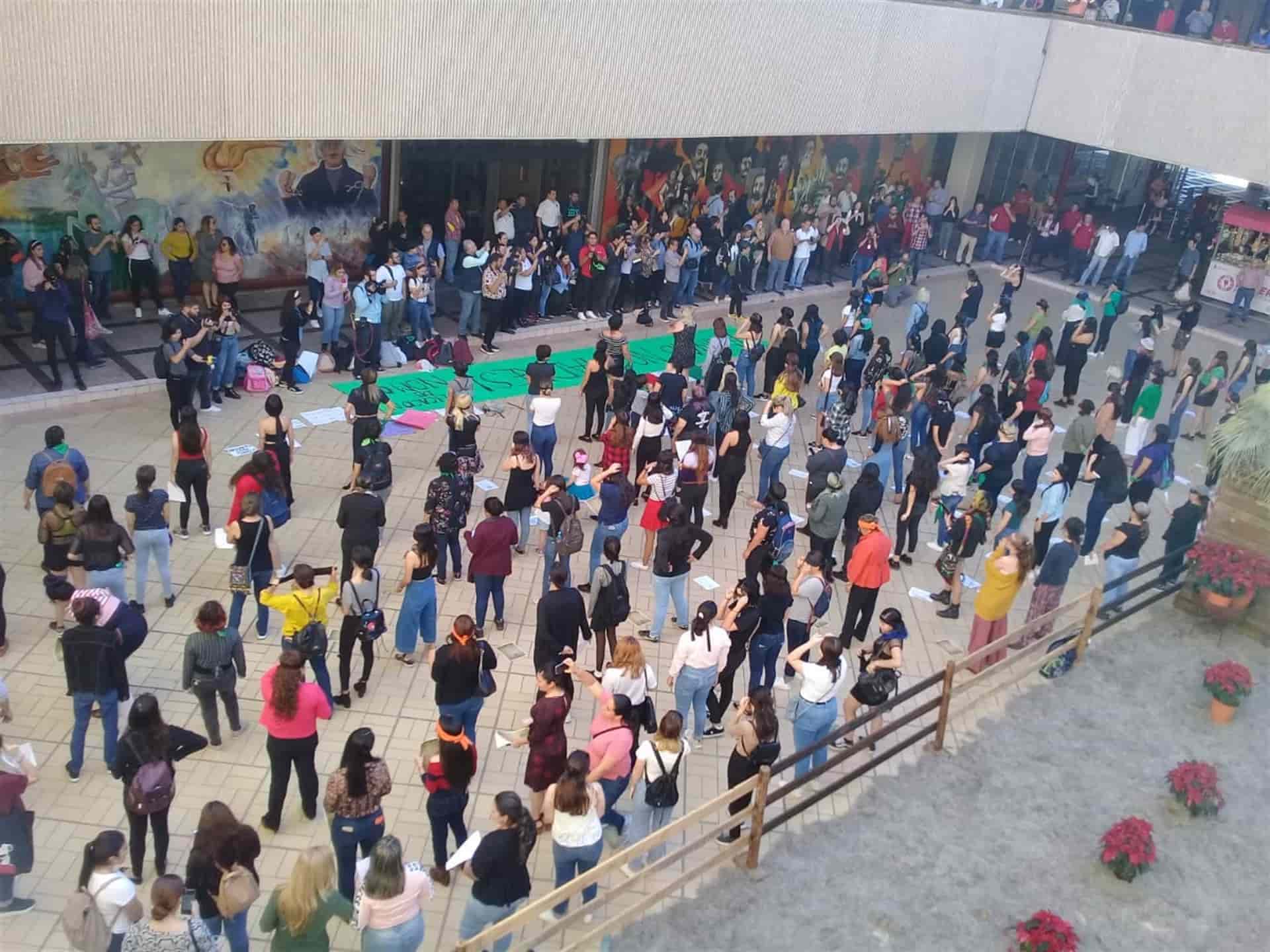 Ahí en la explanada y frente a personal administrativo y sociedad en general, los asistentes corearon éste que se ha convertido en un himno de lucha, ello a decir de Priscila Salas, vocera del colectivo No se metan con nuestras hijas.