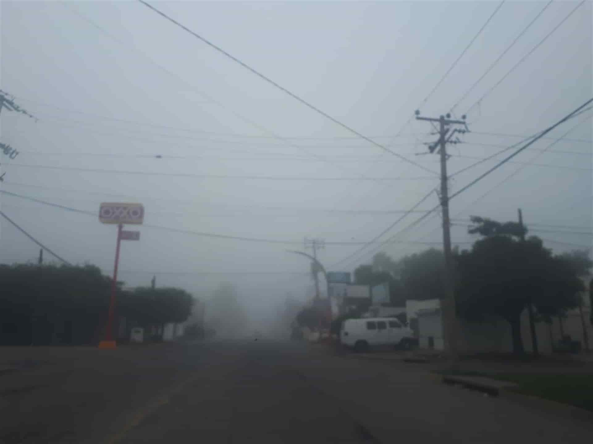 Los Mochis, Sin.- Denso banco de niebla cubre la ciudad de Los Mochis, por lo que Protección Civil de Ahome exhorta a la población tomar precauciones.