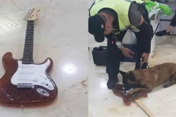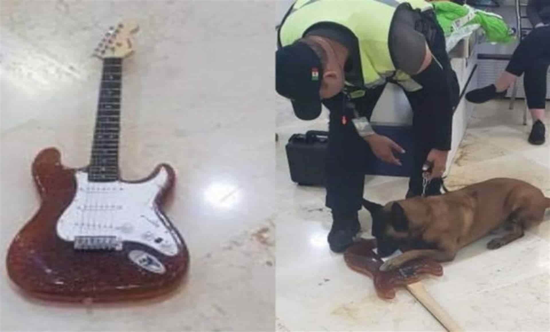 Para una mayor certeza, un binomio canino inspeccionó la guitarra y, después de ello, la marcó de manera positiva.