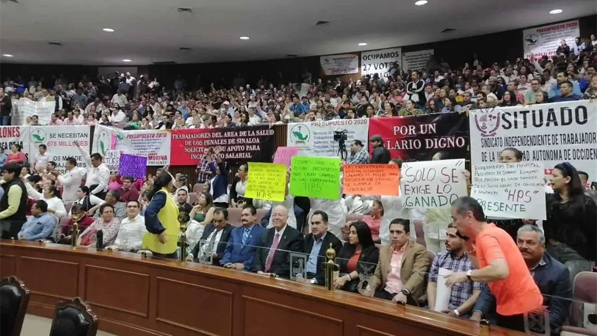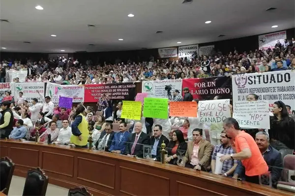 En el recinto legislativo se encuentran trabajadores de salud, educación, el Rector de la UAS; así como desplazados por la violencia y miembros de la UNTA.