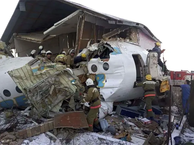 Las autoridades de Kazajistán señalaron que el avión perdió altitud poco después de despegar y se estrelló contra un edificio de dos pisos en una zona residencial. No hay fuego activo en el lugar del accidente.