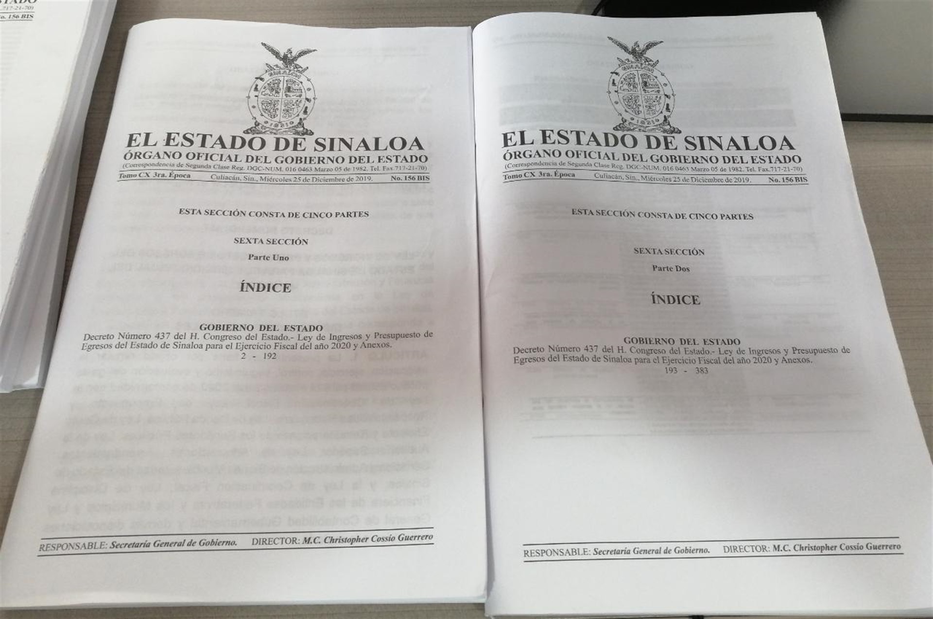 En 5 tomos, se incluye el decreto aprobado por el Congreso local el pasado 24 de diciembre, respecto a la Ley de Ingresos y Presupuesto de Egresos, así lo detalló el director del periódico, Christopher Cossio Guerrero, quien indicó que, la circulación del documento se estuvo preparando desde el día 25; sin embargo, la impresión concluyó hasta hoy, debido al extenso volumen del mismo.