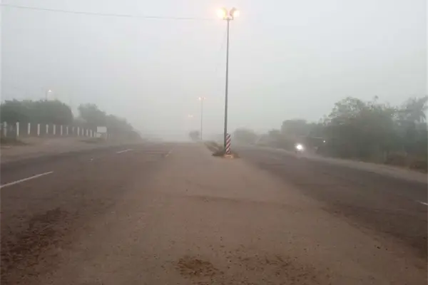 Los Mochis, Sin.- Autoridades de El Fuerte y Protección Civil piden precaución a los automovilistas que transitan por la carretera Los Mochis-El Fuerte por la presencia de bancos de neblina que dificultan la visibilidad al conducir.