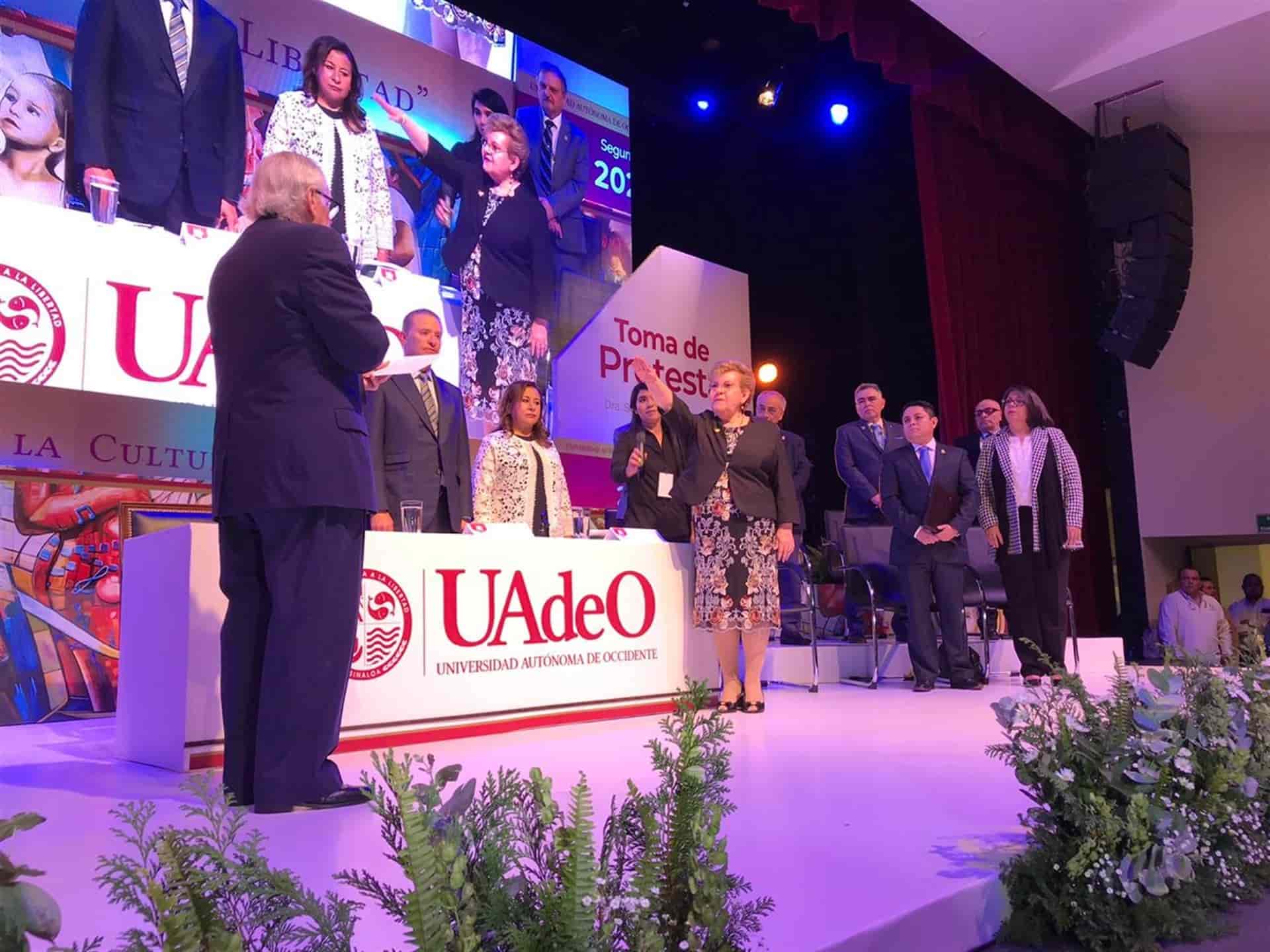 Culiacán, Sin.- En presencia del Gobernador del Estado de Sinaloa, Quirino Ordaz Coppel, el Consejo Universitario de la Universidad Autónoma de Occidente tomó protesta a Sylvia Paz Díaz Camacho como rectora de la institución para un segundo periodo, que corresponde del 2020 al 2024.