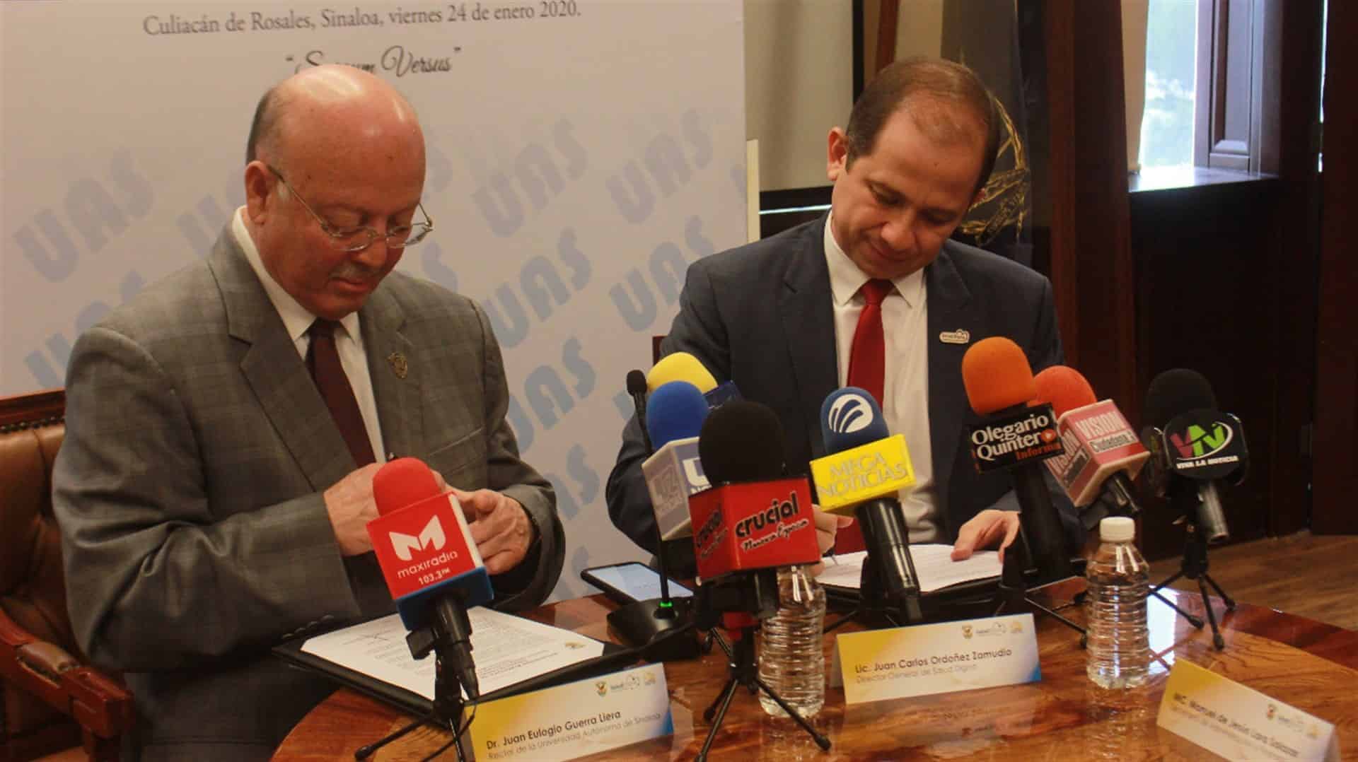 Culiacán, Sin.- Con la intención de fortalecer la vinculación académica, científica y laboral para realizar proyectos especiales que aportarán en el desarrollo académico y social de la población estudiantil y de todo el estado, la Universidad Autónoma de Sinaloa (UAS) y Salud Digna firmaron un convenio de colaboración.