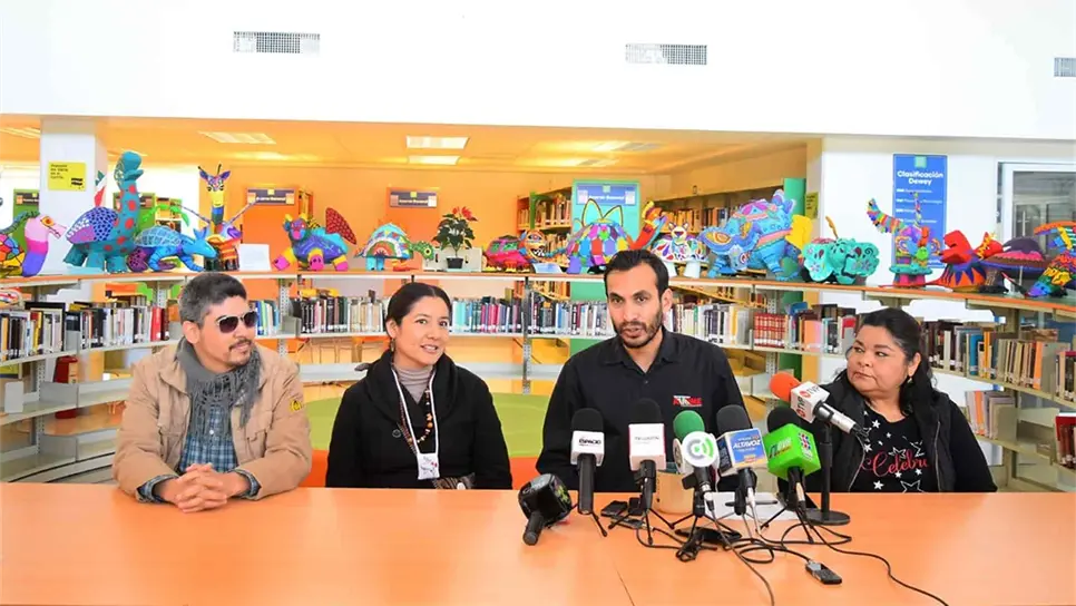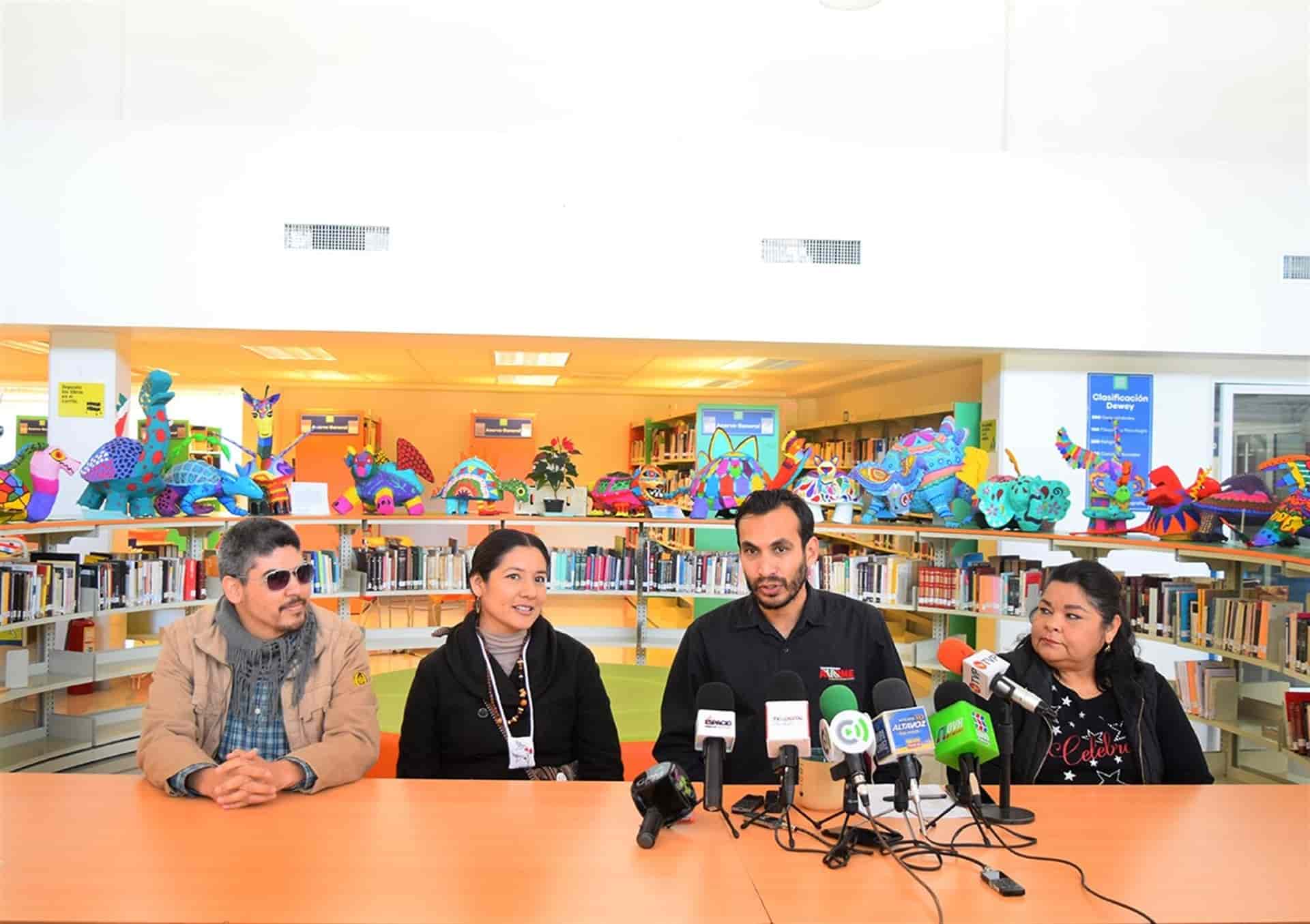 Estuvo acompañado por Iris Villalpando, creadora audiovisual, el músico Oscar Romero, quienes forman parte del programa y Sandra Bojórquez, bibliotecaria encargada de los talleres que se ofrecerán.