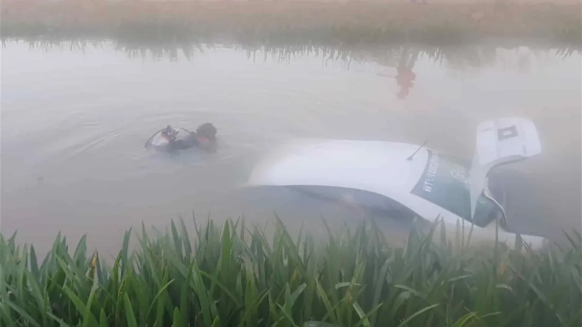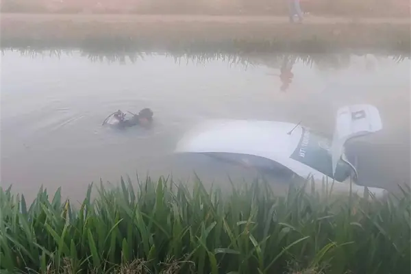 Cae taxi ejecutivo a canal en el ejido Primero de Mayo