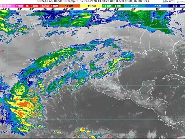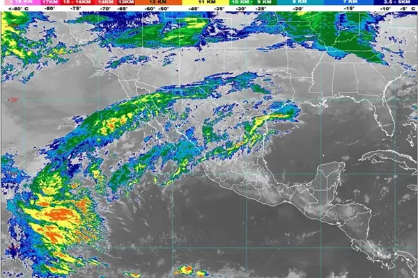 Una circulación anticiclónica en el oriente del Golfo de México mantendrá temperaturas de cálidas a calurosas con valores máximos de 40 a 45 grados Celsius en Guerrero y Michoacán y de 35 a 40 grados Celsius en Campeche, Chiapas, Colima, Jalisco, Morelos, Oaxaca, Sinaloa, Tabasco y Yucatán.