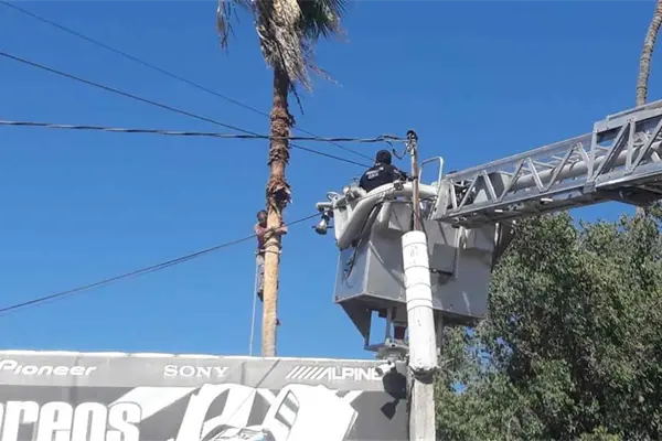 Según informes, el trabajador subió a una palmera ubicada entre un lote baldío y un taller, pero al desprenderse una hoja, esta le cayó en la cabeza y lo golpeó; el hombre terminó inconsciente y con una lesión en la cabeza.