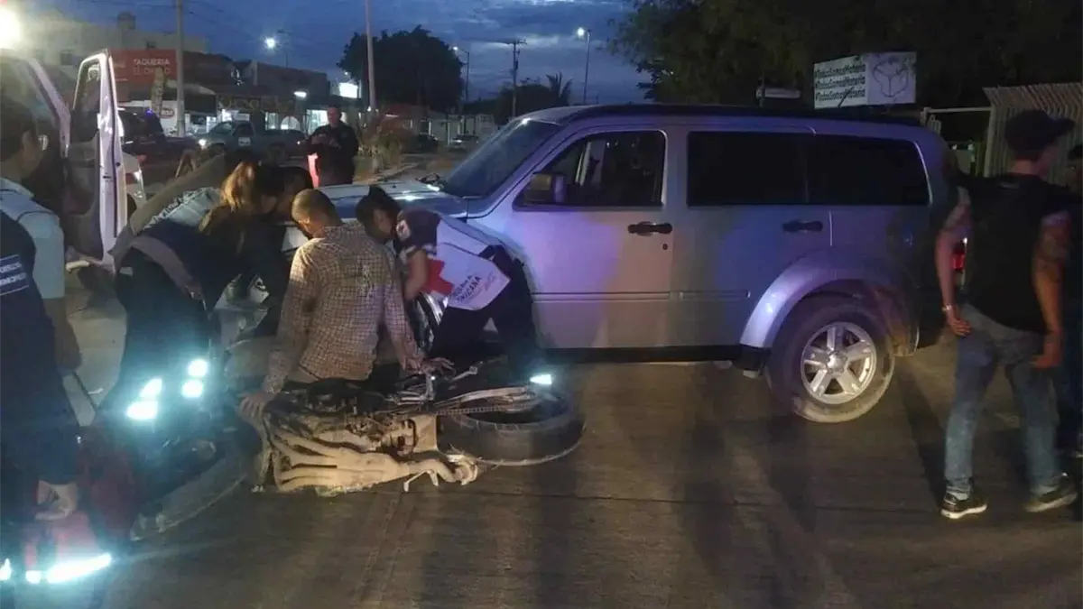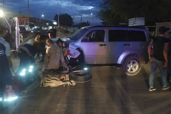 Motociclista lesionado al ser embestido por camioneta en Guasave