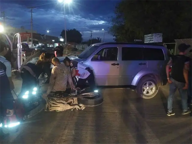 El accidente se registró cuando el motociclista circulaba sobre la calle Martín Pérez, pero al llegar al cruce con el bulevar Ruiz Payán, fue embestido por una joven identificada como Alejandra, “N”, de 19 años, con domicilio en el sector Centro, quien conducía vagoneta Dodge, línea Nitro, color gris, modelo 2008 con placas de Sinaloa.