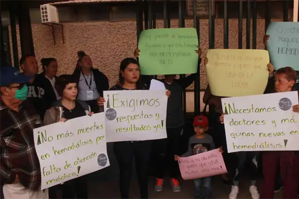 Al lugar asistieron alrededor de 40 personas, entre familiares y enfermos que denunciaron las condiciones en las que reciben el tratamiento de hemodiálisis, el cual es indispensable para sobrevivir y que deben esperar hasta por 12 horas para obtenerlo, de acuerdo con Mariel Barrera.