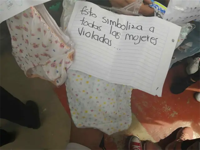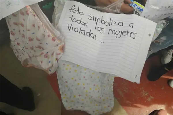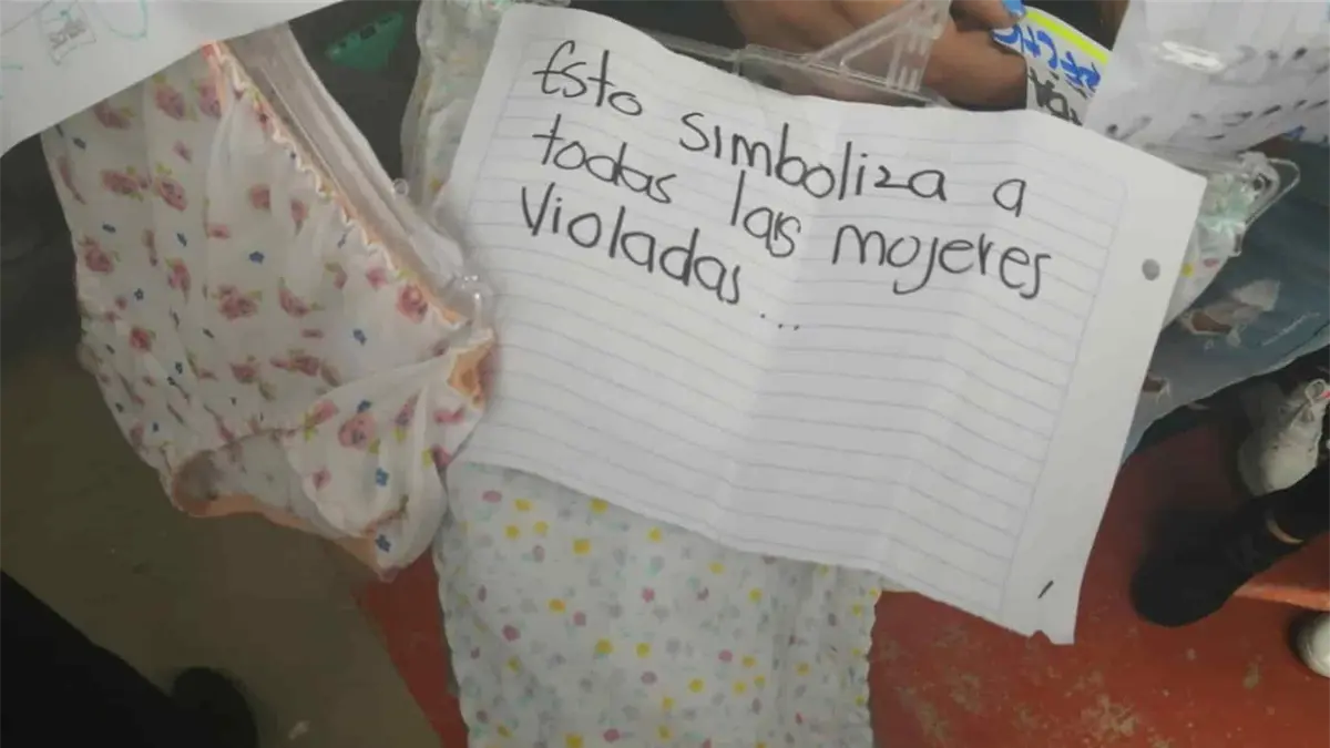 El tendedero se instaló en las canchas de usos múltiples donde se podían apreciar los mensajes que fueron plasmados en hojas de papel, además de prendas de ropa interior, las cuales supuestamente docentes regalaron a las alumnas.