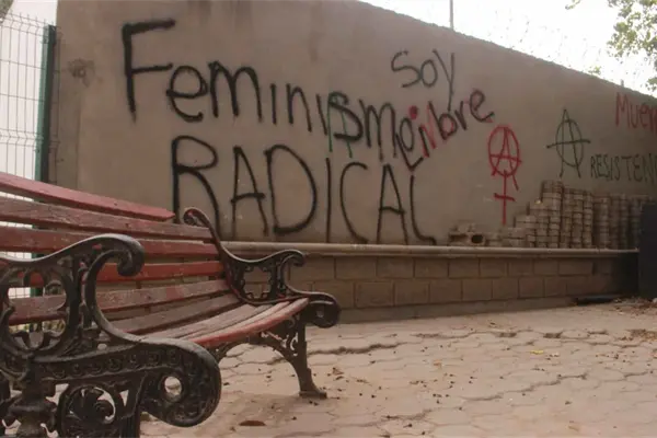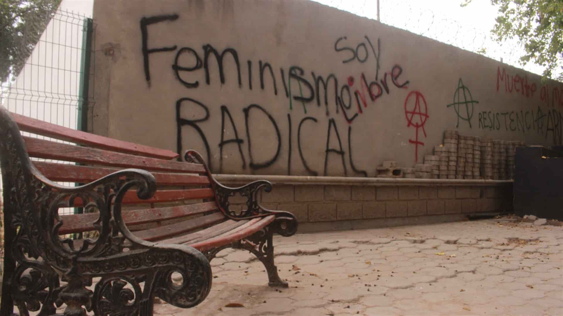 Entre los mensajes escritos con pintura en aerosol, destacan: “feminismo radical”, “soy libre”, “muerte al macho”, “resistencia”, “ármate”, entre otros.