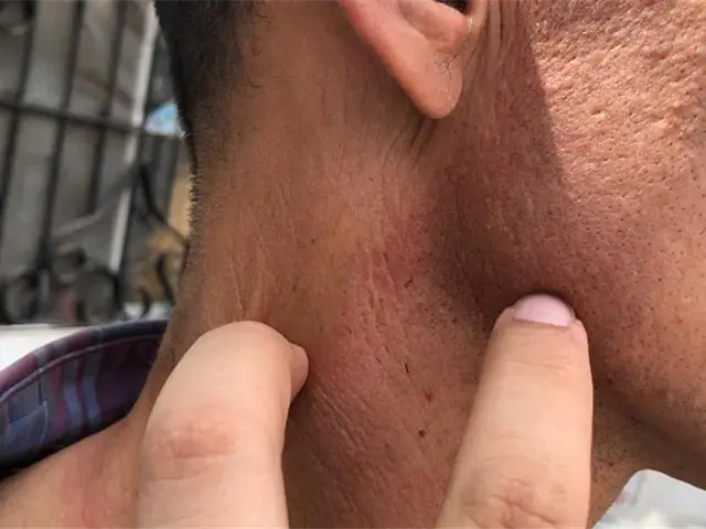 El afectado, quien mostró aruñones en su cuello y rasgaduras en su camiseta, producto del forcejeo con los agentes de las unidades PM3220 y PM3246, dijo que los policías llegaron de forma agresiva a detenerlo, cuando él; lo único que buscaba era evitar que el perro se descompusiera en la banqueta, ya que la basura no se lo llevaría.