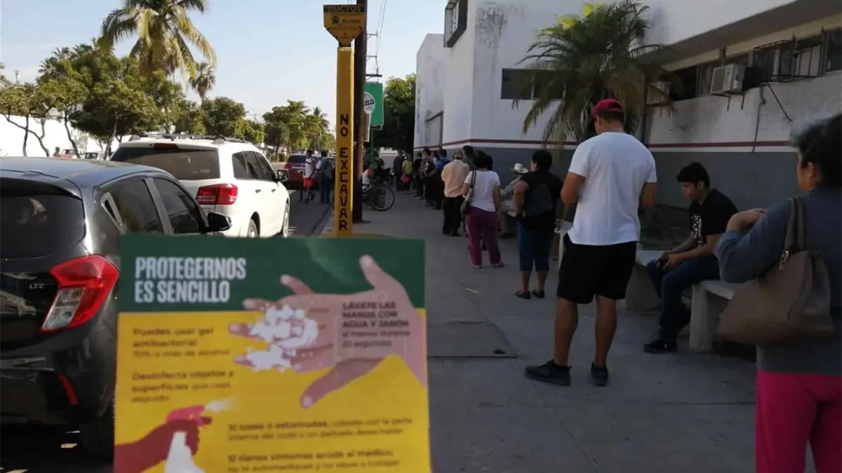 Mazatlán, Sin.- En el edificio de la a Secretaría del Bienestar del Gobierno de México se entregan las fichas para cobrar el apoyo de adultos mayores 68 y más, y desde ahí se aplican las medidas sanitarias para prevenir contagios del Covid-19.