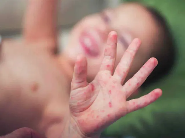 Este padecimiento se caracteriza por su inicio rápido, fiebre, enrojecimiento de ojos, congestión nasal, tos y pequeños puntos blanco dentro de la boca. Entre el tercer y séptimo día aparecen manchas rojas que inician en la cara y se extienden a todo el cuerpo, señaló el Instituto Nacional de Salud Pública.