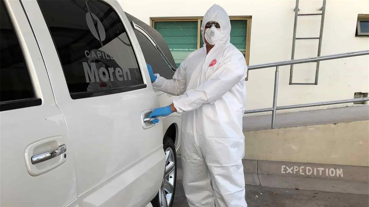 “Bueno ahorita tenemos las instrucciones de Coepriss y de la Secretaría de salud, que el personal debe ponerse su traje EPP, su protección ocular, cubre calzado y doble guante, tener mucha precaución al manipular el cuerpo. El hospital a nosotros nos va entregar el cuerpo ya completamente amortajado, para que nosotros solamente recolectamos el cuerpo, y la recomendación que se le hace a las familias es que sea cremación directa”.