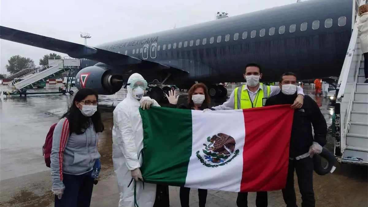 Aunado al mensaje, Ebrard Casaubon compartió una imagen de algunos de los connacionales, portando una bandera mexicana, a punto de abordar una de las aeronaves.