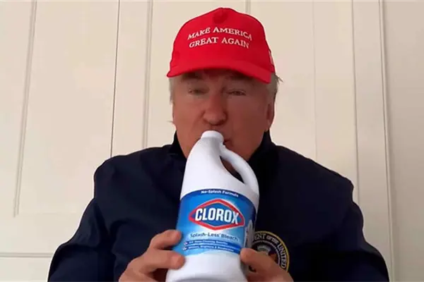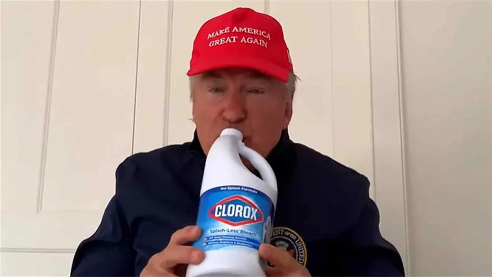 Alec Baldwin imita a Donald Trump y bebe desinfectante