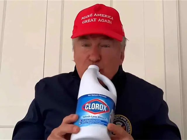 Con una gorra en color rojo, sorprendió cuando tuvo entre sus manos una botella de desinfectante para llevarla a su boca, como consecuencia de las declaraciones de Trump que sugerían tomarlo para mejorar los síntomas de la pandemia.