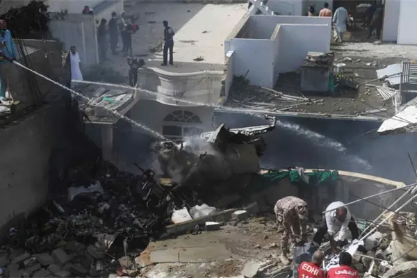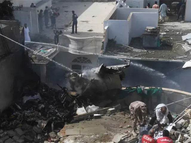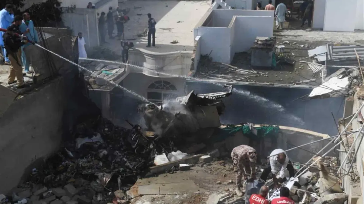 Las imágenes dadas por los medios pakistaníes pueden ver los restos del avión y el fuego en algunas casas de la zona. También se puede ver humo, reportó el canal de televisión NDTV.