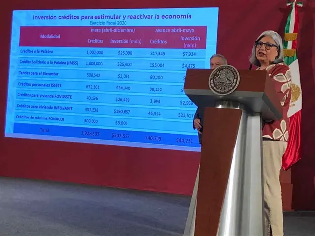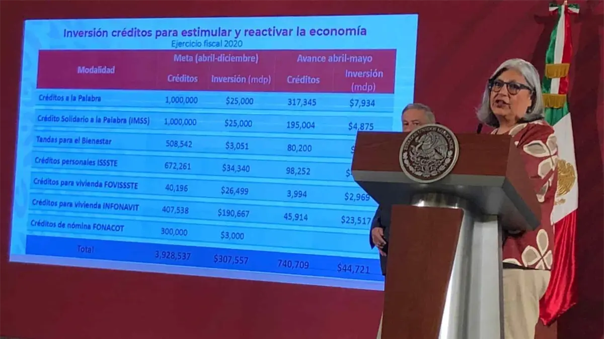 Durante la conferencia del presidente Andrés Manuel López Obrador, explicó que de abril a mayo se han entregado los apoyos de Créditos a la Palabra, Créditos Solidarios del IMSS, Tandas del Bienestar, Créditos personales del ISSSTE, Créditos para vivienda FOVISSSTE, Créditos para vivienda INFONAVIT y Créditos de nómina Fonacot que equivalen a 44 mil 721 millones de pesos.