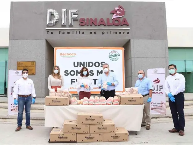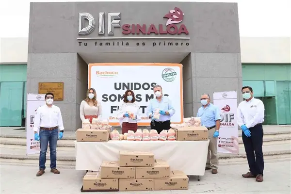 Ante la presencia de Alfonso Gerardo Suástegui Pérez, Gerente de la Unidad Negocio Noroeste de Bachoco, el secretario de Desarrollo Social, Ricardo Madrid y la directora general de DIF Sinaloa Connie Zazueta Castro, la presidenta de DIF Estatal expresó: “de verdad agradecemos mucho el apoyo y la solidaridad de esta gran empresa, porque uniendo esfuerzos es la única manera que podemos afrontar la necesidad alimentaria que nuestra gente está padeciendo durante la pandemia”.