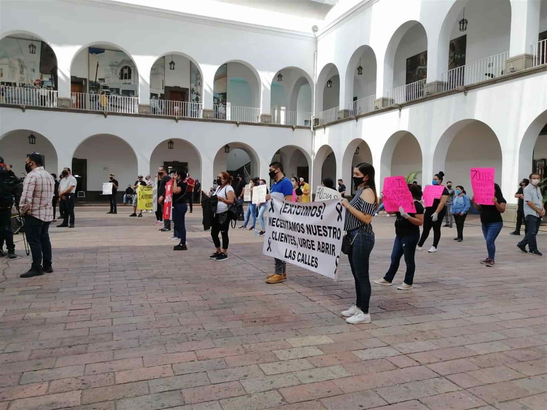 Culiacán, Sin.- Desde muy temprano, los comerciantes del centro de la ciudad se organizaron para manifestarse a las afueras de Palacio Municipal, para exigir que se les permita abrir sus negocios, sin saber que habría Sesión de Cabildo en el patio del ayuntamiento y podrían hacerme sus peticiones directamente al alcalde Jesús Estrada Ferreiro.