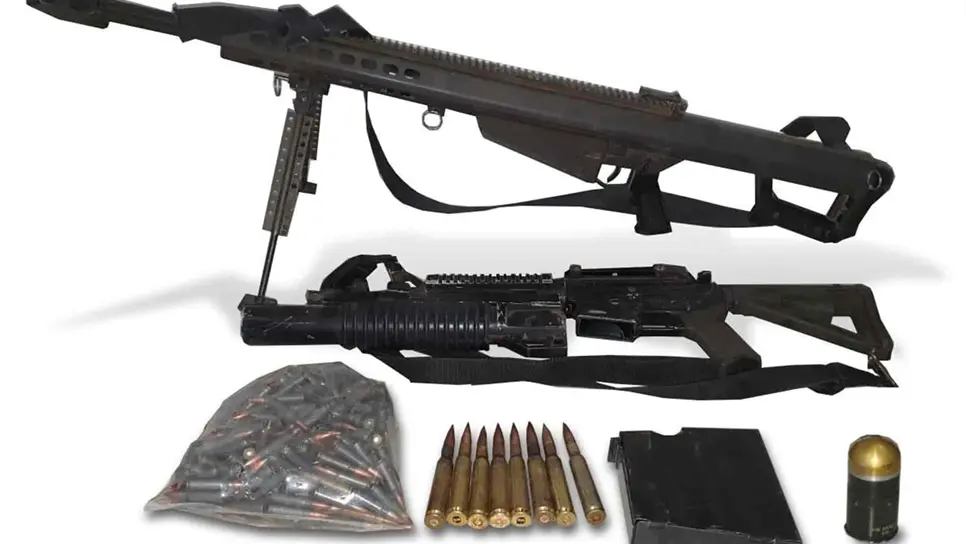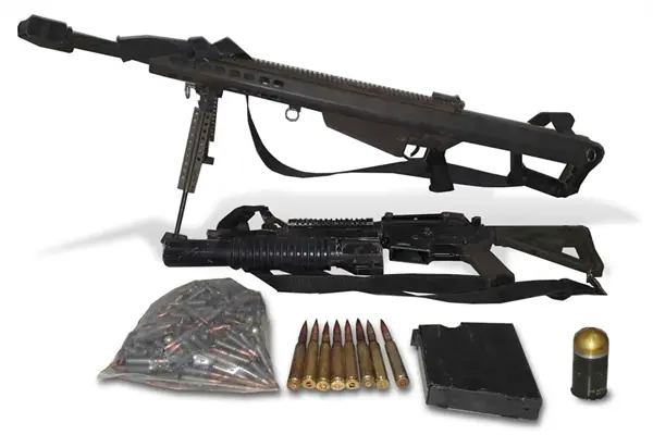 Según informes, los efectivos llevaban a cabo recorridos vía terrestre en los poblados de Tecolotes, en la sindicatura de Tepuche, donde localizaron un arma larga tipo barrett, un fusil con aditamento lanzagranadas, una granada y cartuchos útiles de diferentes calibres.