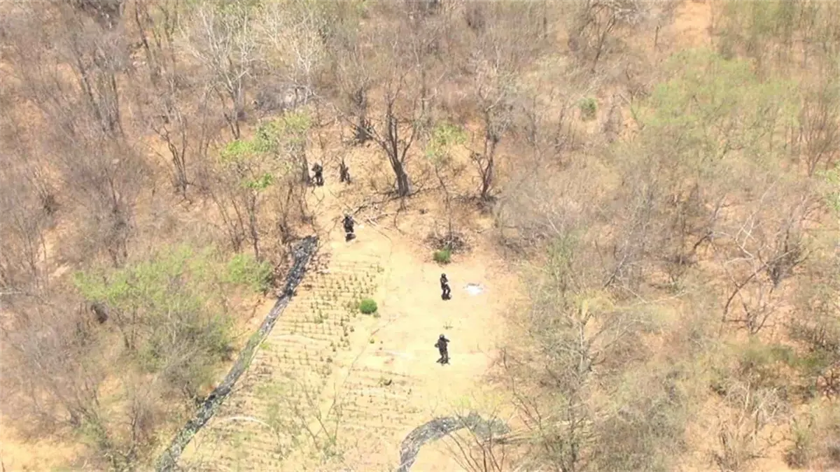Ante el avistamiento aéreo, policías estatales se trasladaron en vehículos oficiales a las coordenadas indicadas para asegurar el plantío de hierba ilícita, y ponerlo a disposición como corresponde.