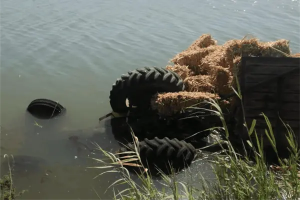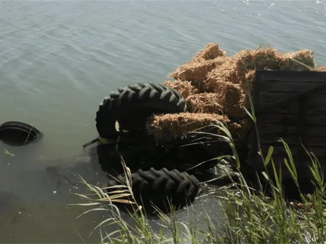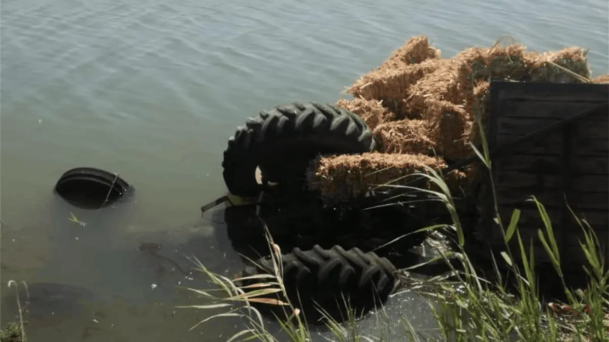 Tras la salida de camino, la unidad agrícola se precipitó a las aguas de la habrá hidráulica, y quedó con neumáticos hacia arriba. El operador del tractor logró salir a tiempo y se puso a salvo por sí mismo; resultó ileso.