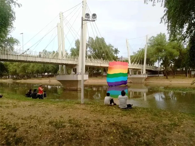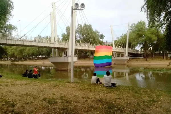 Las familias que pasaban por el lugar la tarde del domingo aprovecharon para tomar fotografías de la bandera arcoíris y contemplarla por un rato, sobre todo esta acción causó curiosidad en los jóvenes y niños que pasaba o se ejercitaban en el parque Las Riberas.